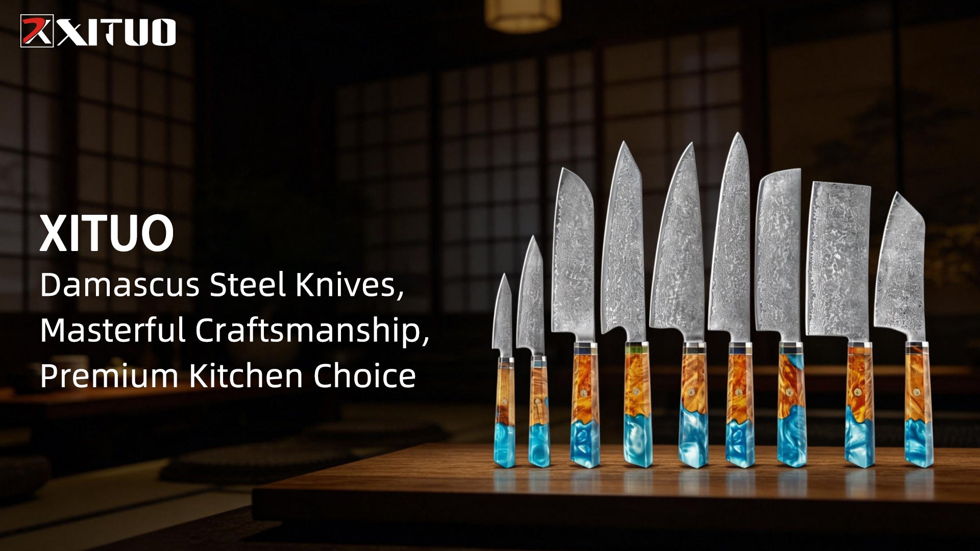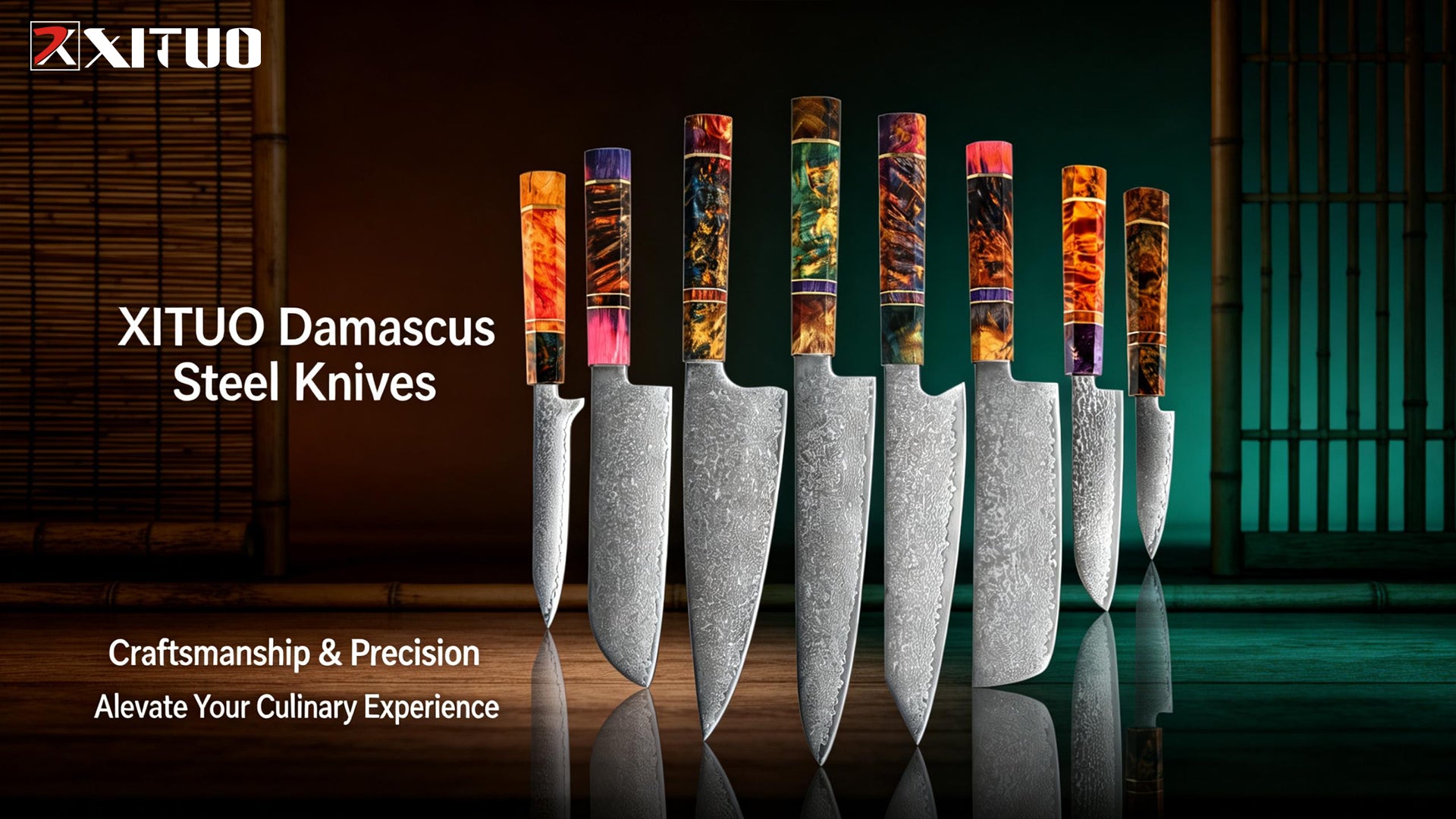 XITUO Kiritsuke Chef Knife,8 Inch, 37 Layers Tricolor Copper Damascus Steel-Japanese Damascus Knife for Chefs&Home Cooking-Razor Shar