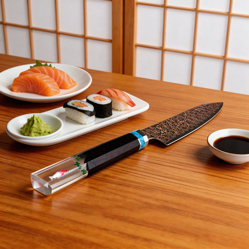 The knife's Damascus steel blade is eco-friendly, ensuring sustainability without compromising on performance.